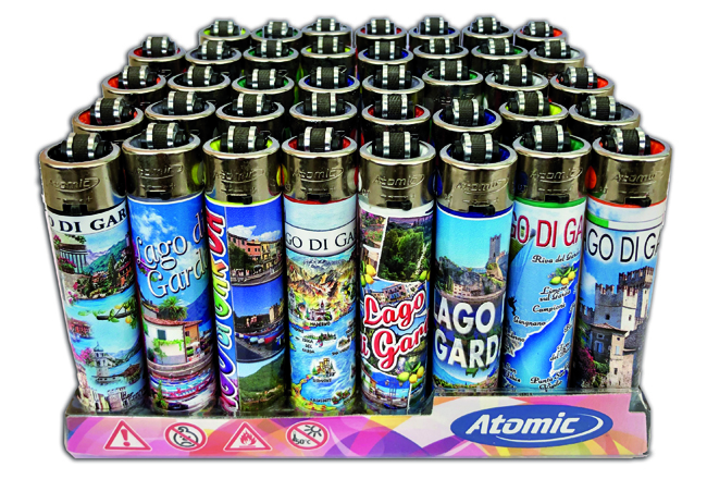 Accendino tondo ricaricabile piezoelettrico cm 7,5×1,2. Gli accendini sono forniti con espositore da 48 pezzi