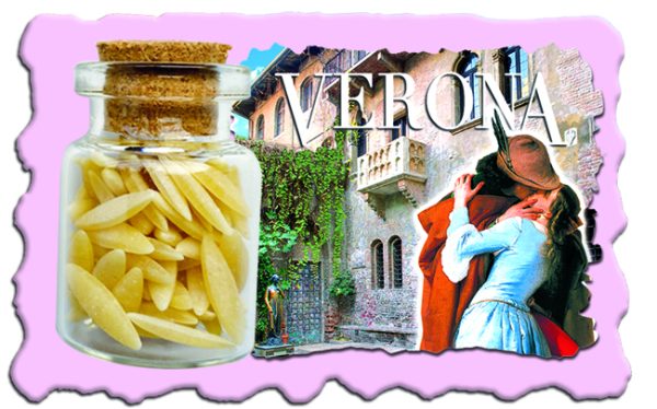 Magnete in resina ecologica effetto marmetto cm 7,5×4,7 con bottiglietta contentente pasta; disponibilie in alternativa con bottiglietta contenente neve (AN079)
