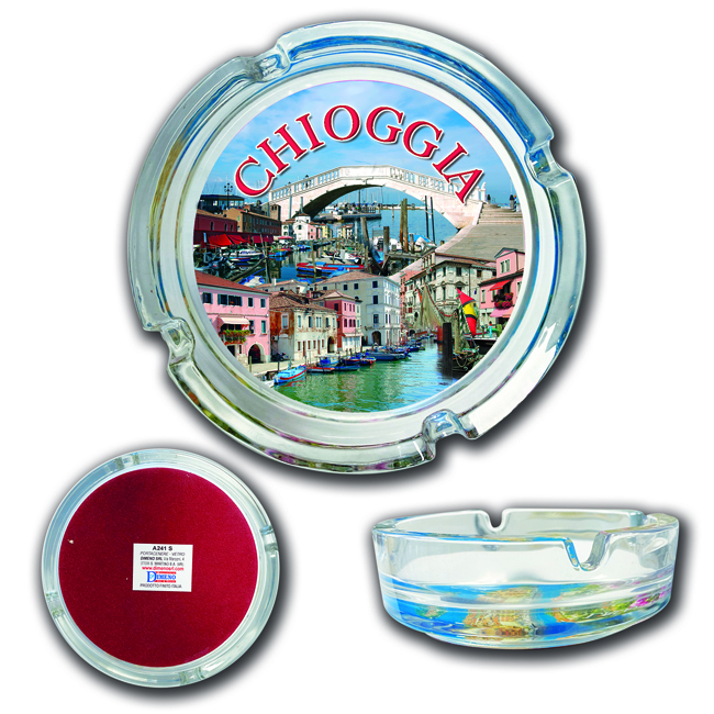 Portacenere rotondo in vetro con stampa sul fondo cm 10,5×10,5×3,5
